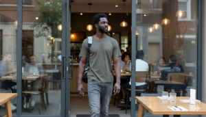El sol de la tarde caía con suavidad sobre la terraza del «L’Élite», el restaurante más exclusivo de la ciudad, donde los cubiertos de plata brillan tanto como las joyas de sus comensales. Elías caminaba con paso tranquilo, vistiendo una camiseta verde oliva y cargando una mochila gris al hombro. Su sonrisa era genuina, la de alguien que disfruta de un día de descanso tras una larga jornada de trabajo.