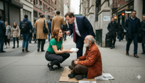 Esta historia nos recuerda que la posición social es un vestido que nos ponemos y nos quitamos, pero el carácter es la piel que llevamos debajo. Nunca maltrates a alguien pensando que su situación actual define su importancia. El mundo da muchas vueltas, y aquel a quien hoy pisoteas, mañana podría ser quien sostenga la mano que necesitas para levantarte. La verdadera grandeza no se mide por cuánta gente tienes debajo de ti, sino por cuántas veces eres capaz de agacharte para ayudar al que está en el suelo. La humildad no es debilidad, es el poder más grande que un ser humano puede poseer.