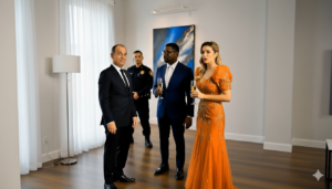 Sin embargo, la paz de ese momento se vio interrumpida por el taconeo agresivo de Vanessa, una socialité conocida tanto por su inmensa fortuna como por su falta de tacto. Ataviada con un vestido rojo sangre bordado en hilos de oro, Vanessa no veía arte; veía activos financieros.