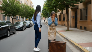 Marta caminaba con la seguridad que solo dan unos zapatos de marca y un bolso de diseñador. A sus ojos, ella era la encarnación del éxito. Sin embargo, su mundo de cristal se trizó cuando vio a su madre, Elena, esperándola frente a su edificio. Elena vestía un delantal sucio, el rostro cansado y sostenía una maleta de cuero desgastada que parecía contener mil historias de miseria.
